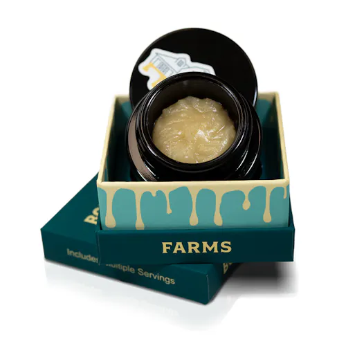 TASTING NOTES: Strong sweet OG funk aroma with diesel gas undertones and a texture with the best of both worlds- a ring of 1g cold cure around the outside of the jar, finished off with a 1g dollop of juicy jam in the center. Bountiful Farms’ thumbprints feature two exclusive in-house strains presented in two unique textures. Visually iconic with curations and quality that showcase Bountiful Farms’ pursuit of high-quality rosin for all.